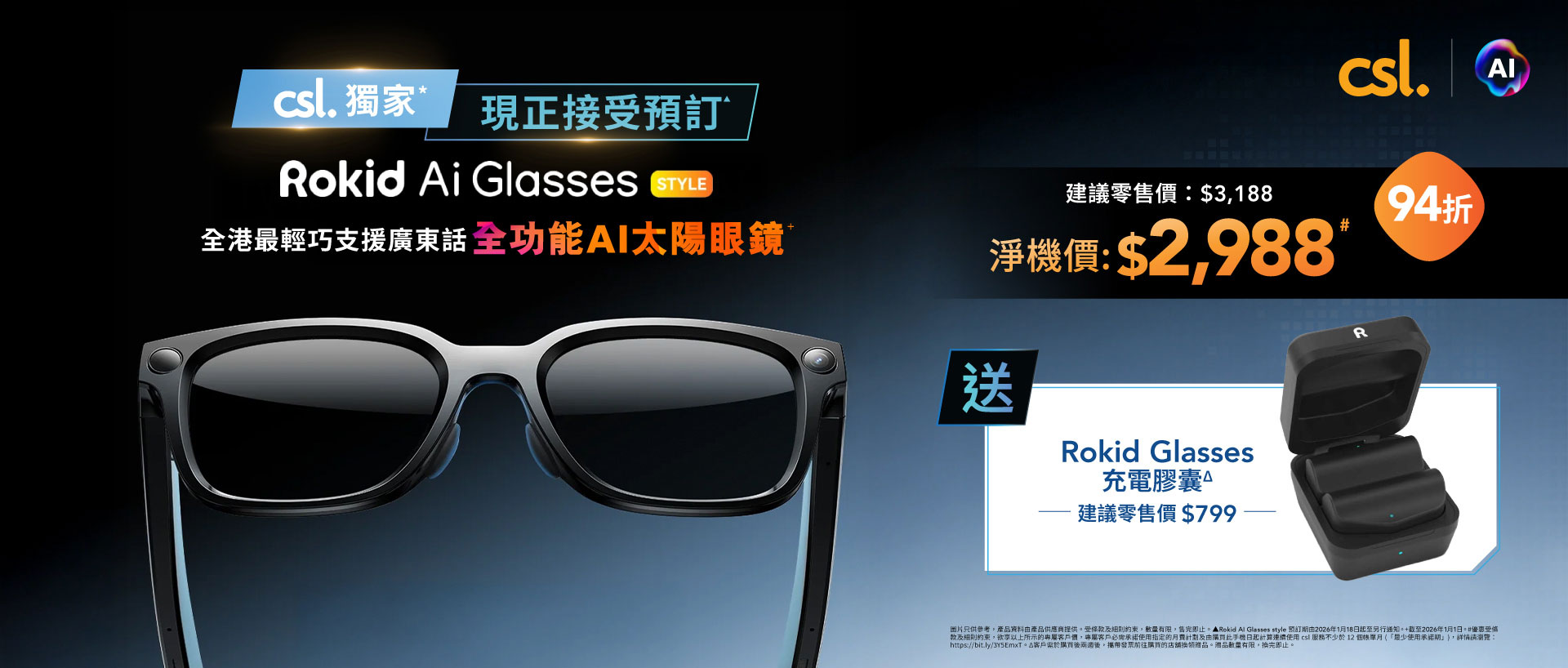 【#csl極速號外 全線 csl 門市 率先試玩全港獨家* Rokid Glasses AI 智能眼鏡 內置強大 AI 助手為你嘅健康護航!】