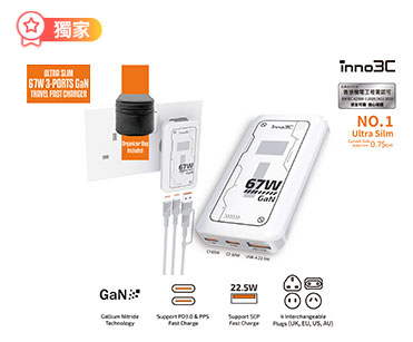 inno3C i-67DT-S 超細 67W 三輸出 GaN 旅行快速充電器連收納袋