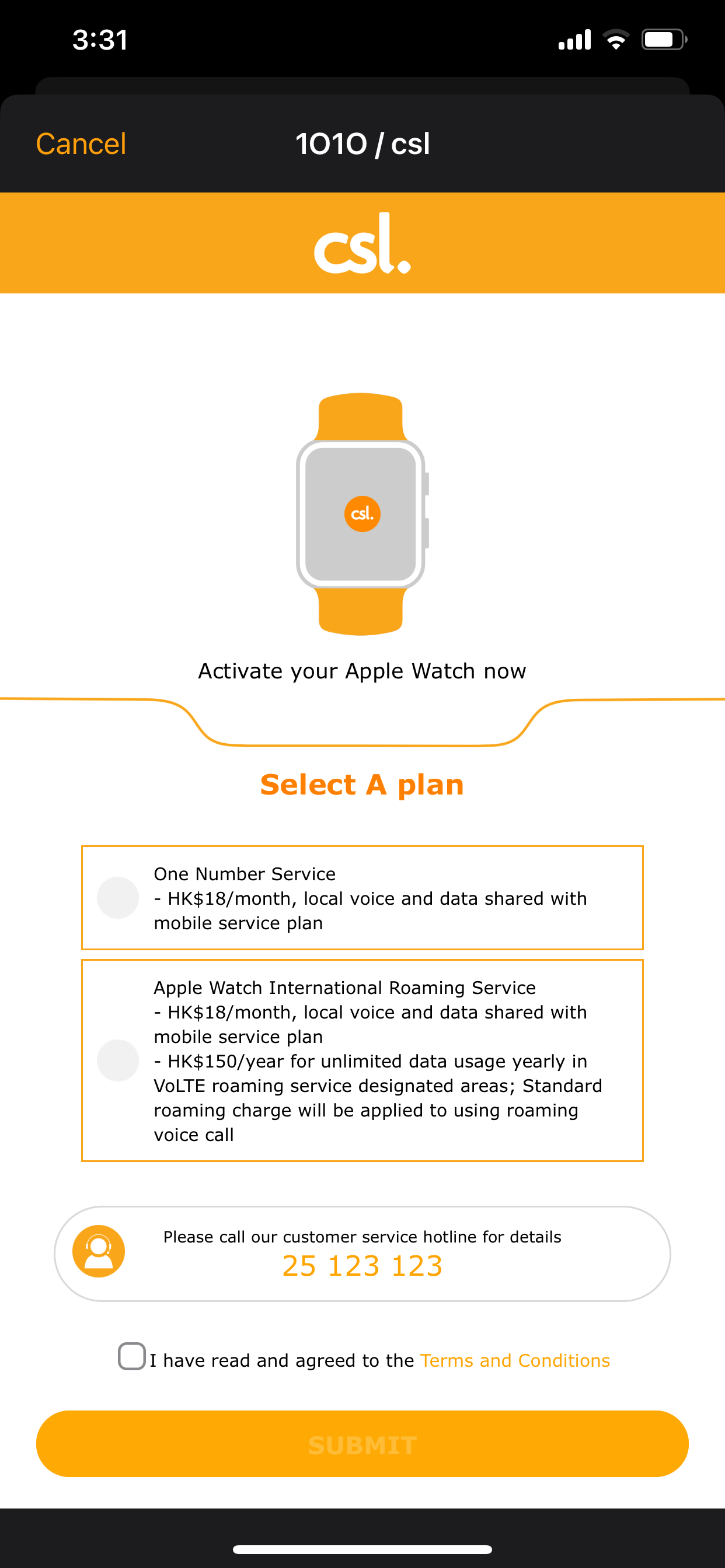 ~ HK$15 per month Service is applicable only to customers who subscribe to the Service for a commitment period of 24/36 months (the "Commitment Period"). The monthly fee of the Service for the first 6 months would be waived if customers port-in the numbers to csl and 1O1O for Service Plan subscription. After the Commitment Period, the 5G service will be automatically renewed on a monthly basis at HK$25 per month, while the 4G LTE service will be automatically renewed on a monthly basis at HK$18 per month.
