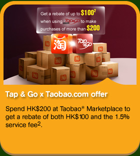 Tap & Go Payment Service is only applicable to customers registered with HKID, with designated handset. Tap & Go Payment Service is subject to Terms and Conditions of HKT Payment Limited. For details, please visit www.tapngo.com.hk. Terms and Conditions apply. For details, please visit http://www.tapngo.com.hk/index.jsp?lang=tw&page=rewards#offertaobao.「淘寶網」、「Taobao」、「Taobao.com」、「淘」and its images are registered trademark of Alibaba Group Holding Limited used under license.