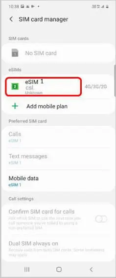 3. Select eSIM at field "Use this SIM for mobile data", then click "Manage eSIM profiles"