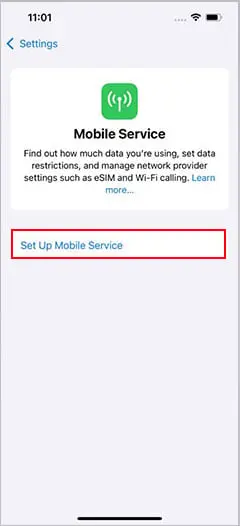 點選“設定”以透過流動數據或Wi-Fi設定eSIM