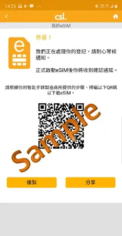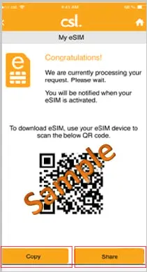 a. 直接前往任何 1O1O Center或csl AI Store申請 eSIM。成功申請後,閣下將獲得一個 eSIM 啟動套裝。該eSIM啟動套裝包含一個獨有的二維碼,僅可掃描一次。