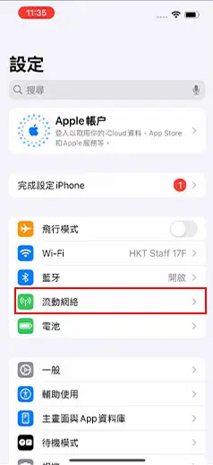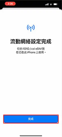 完成启动后,你会看到新eSIM 载入并使用网络中