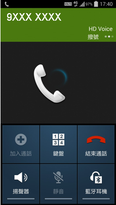 選擇"VoLTE call"將會見到頂頭上的"VoLTE"標示 |