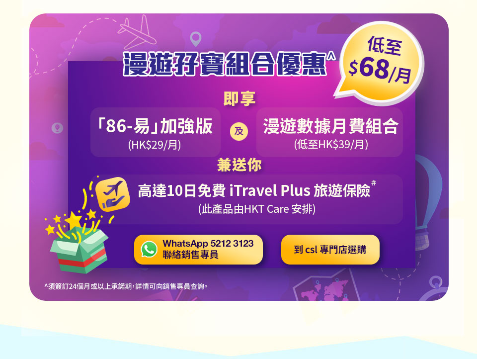 你必需透過 csl 流動應用程式 (“流動應用程式”) 完成登記 ”86-易,86-易加強版及 86-易 Ultra” 增值服務 (“本服務”)。 |
